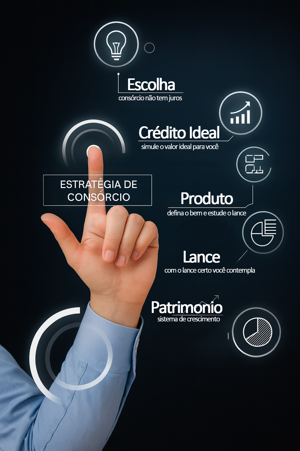 O consórcio estratégico é a forma mais inteligente de adquirir patrimônio sem juros e sem pagar o dobro ao banco. Você usa o lance para acelerar a contemplação, compra à vista e transforma o imóvel em renda.